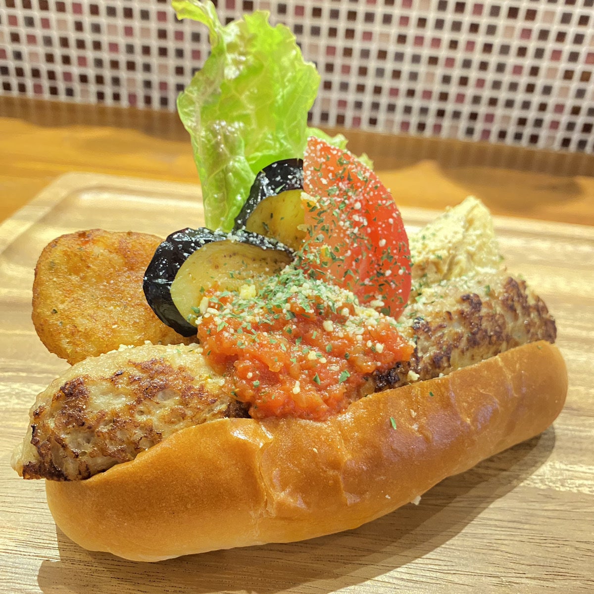 •最近産声を上げた、新参者「まるっと808(やおや)のほっとはんばーぐ」の最新ホットドック。