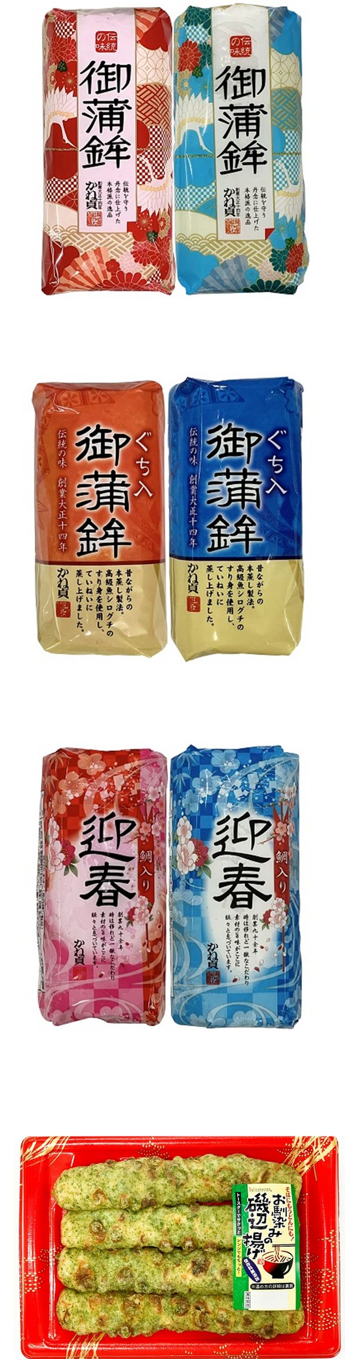 かね貞では、直営店以外にスーパーなどの小売量販店向けにも年末年始用に様々な料理にお使いいただける「蒲鉾」や「磯辺揚げ」を毎年発売しています。