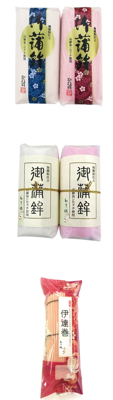 お魚すり身惣菜かね貞直営店のお正月名物「珍味蒲鉾」うに・さけ・ピスタチオ味の三種を発売