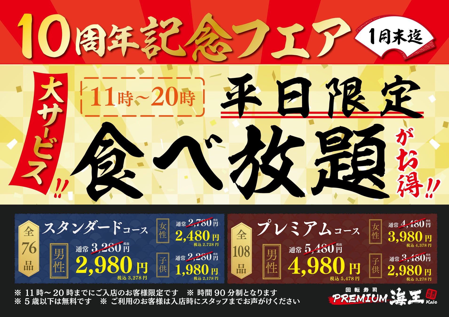 国内外のお客様にご愛顧いただき、丸10年。お客様への感謝の気持ちを込めて 回転寿司プレミアム海王 10周年祭開催‼