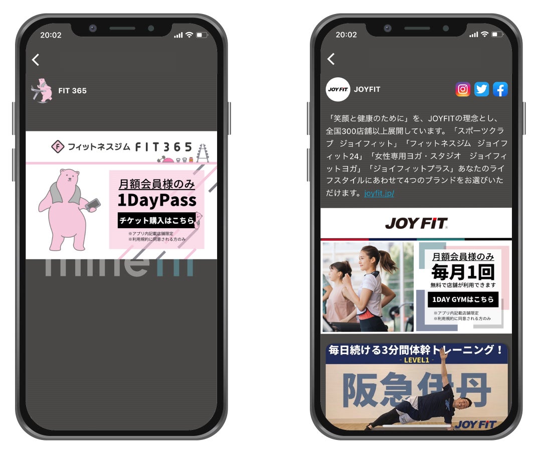 また、アプリ上からFIT365の1DAYPASS(税込1100円)の購入も可能です。