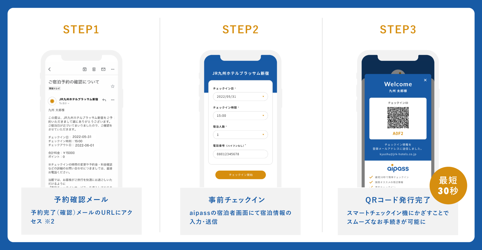 ※1…各予約サイトの予約(完了)通知メール内の『aipass』専用URLが表記されます。