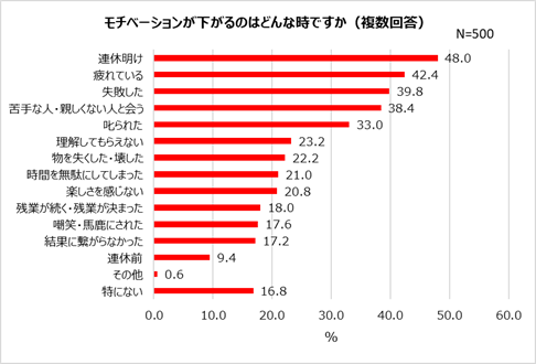 モチベーションが下がるのは「連休明け」「疲れている」時。
