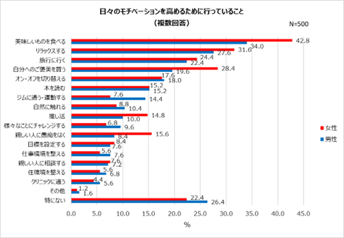 モチベーションを高めるために行っていること「美味しいものを食べる」、