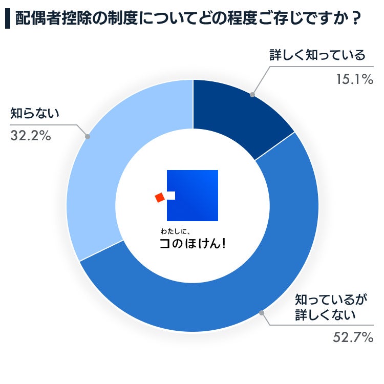 最多は「知っているが詳しく知らない」52.7%で、「知らない」32.2%と合わせると、約8割の方が「配偶者控除」の制度への理解が十分ではない実態が見えてきました。