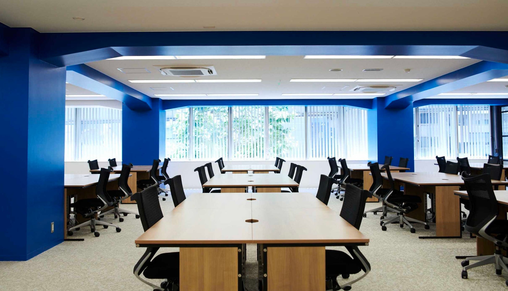 執務スペースは、それぞれが業務に集中しやすいように、ゆとりを持ってデスクとチェアを配置にしています。個別に相談がしやすいように、デスクの配置をこだわり、柔軟に移動や声がけがしやすい導線設計になっています。
