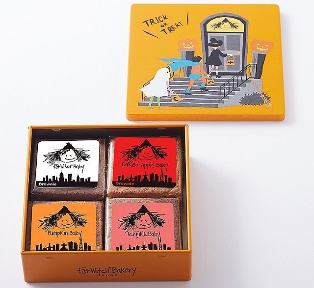 ハロウィンの夜に仮装したキュートなWitches! 手のりサイズで可愛い尽くしのミニ缶は、ハロウィンらしいオレンジカラーで。 自分用にももちろん、ハロウィンギフトにぴったりなブラウニー4個セットです。