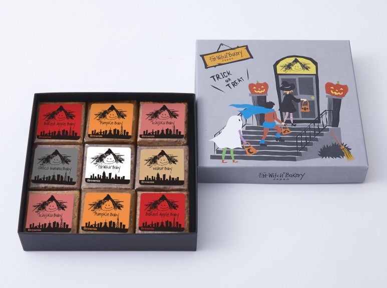 こちらのセットは、「いちじく」「パンプキン」「ベイクドアップル」3種を2個ずつと「オリジナル」「チョコバナナ」「ウォルナッツ」を各1個ずつを魔女の可愛い限定パッケージに詰め合わせた9個入りパッケージです。