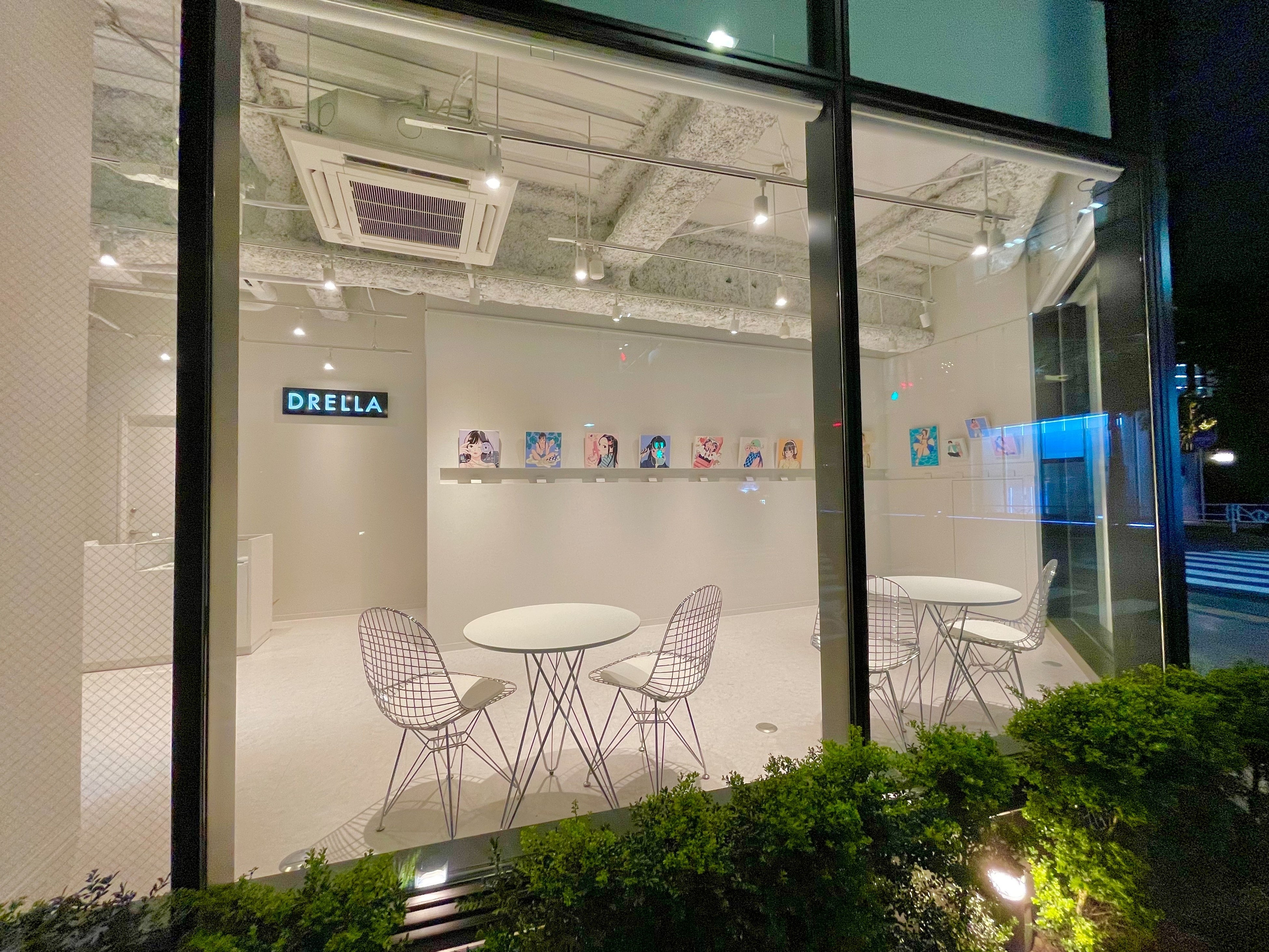 「DRELLA」の名は、米国ポップアートの旗手、故アンディ・ウォーホルの仲間内での造語によるニックネームから取られており、ドラキュラとシンデレラという両極端な存在を内包する様、振り幅の大きさを意味している。アートギャラリーは、トレンド発信基地・代官山の駅より徒歩3分、八幡通りと代官山坂の交差点の路面に位置し、全面ガラス張りとなっていることから視認性が高く、ショーウィンドーのように歩行道路からもギャラリー内を見ることができる。又、仮想通貨ウォレットMetaMaskと連動したNFTアートフレームの開発、配線が見えないようにデジタル機器を配置できる壁面設計、大型モニターやプロジェクターの設置など、デジタルアートの展示に対応した空間となっている。代官山エリアに配信スタジオの開設も行い、アーティストインタビュー、イベント情報などを多言語対応したWEBメディアで発信していく。