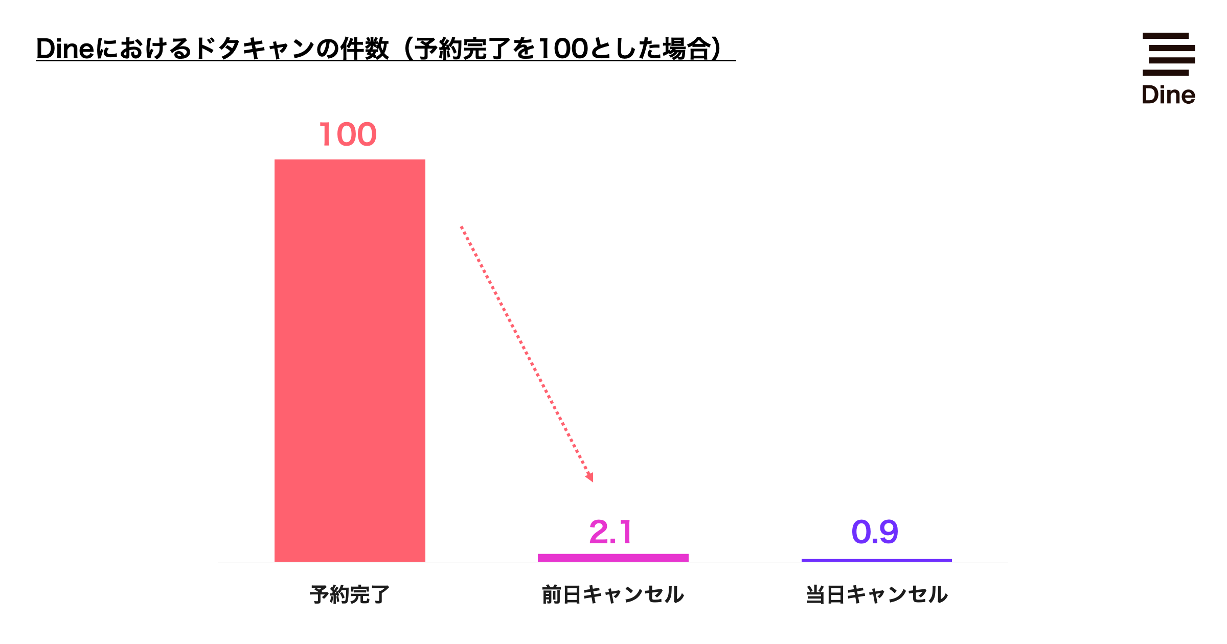 当社の運営する婚活・恋活アプリ「Dine」では、創業時よりこのドタキャン対策には力を入れており、特に2018年末にリリースした「Dineプロテクト」の機能は、ドタキャン減少に大きく貢献しております。この機能はアプリからの予約に関して、直前キャンセルが発生した場合、お店がキャンセル料をご請求できる機能です。