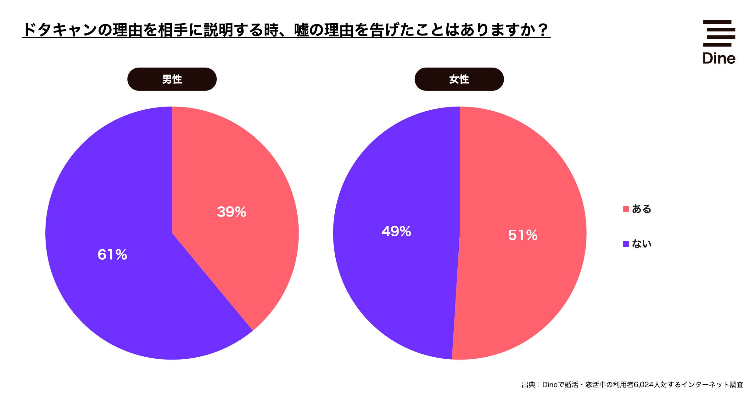 ●51%の女性が「ドタキャン時に相手に嘘の理由を告げたことがある」と回答