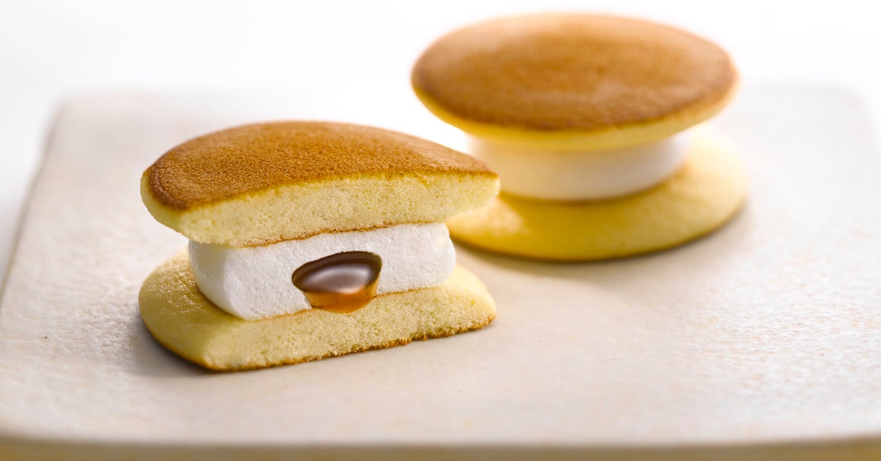とろりと甘じょっぱいみたらしソースを包んだライスミルクのプリンを、ふわふわのパンケーキでサンドしました。