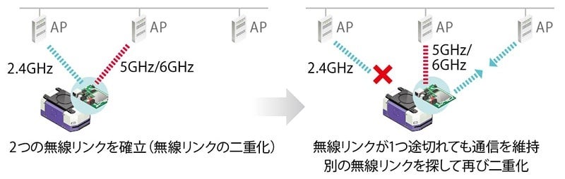 新製品は、当社の「切れない無線LANの追求」をコンセプトに、多数の移動体との無線通信で安定した通信環境を実現するメッシュWi-Fi/スマートローミング機能が搭載されています。半導体製造・食品工場や物流センター、医療機器など高い信頼性が求められる環境での利用に適しています。