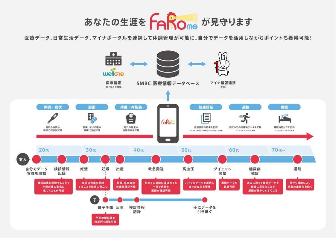 株式会社三井住友フィナンシャルグループの連結子会社である株式会社プラスメディ(所在地:東京都千代田区、代表取締役社長:永田幹広、以下プラスメディと表記)は、「人それぞれの心と体のゆたかさを創造する」を経営理念のもとスマホアプリの開発と運用をしています。プラスメディは2019年から通院支援スマホアプリ『MyHospital』『wellcne』をすでに全国21病院で運用し、アプリ機能のひとつとして通院時の検査・処方箋等のデータを患者さんにフィードバックしています。そういった中、運用を実施する現場から「通院時以外の時間帯での患者の健康データはどうなのだろうか?」という声があり、その声の解決手段を検討した結果、QOL向上アプリ『FAROme(ファロミー)』の開発に至りました。