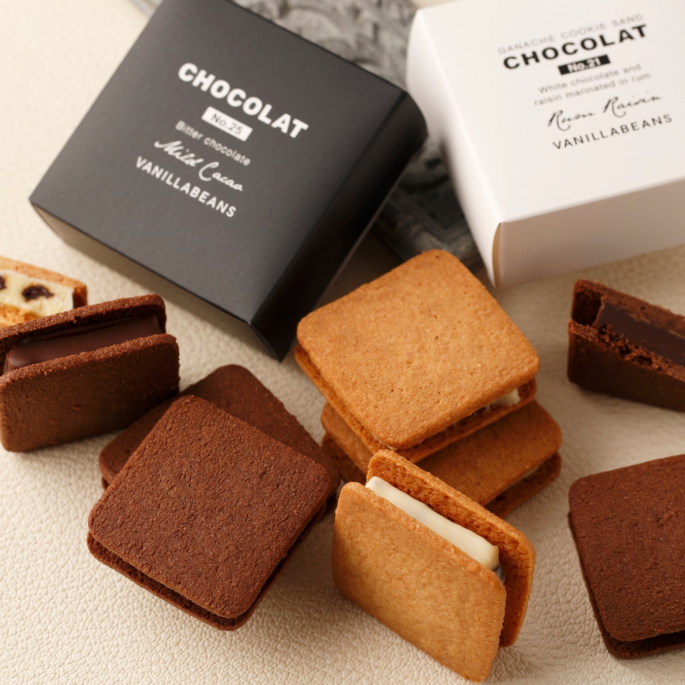 生チョコレートサンド、"ショーコラ"の販売開始から20年を記念し、VANILLABEANSファンへ感謝を込めた、簡易包装のお得な記念セットをオンライン限定で販売いたします。異なるフレーバーのショーコラが4個入った詰め合わせを、5つのパターン(定番フレーバー、人気フレーバー、果実フレーバー、ドリンク系フレーバー、デザート系フレーバー)をご用意。全てを制覇すると20種類のショーコラがお楽しみいただけます。