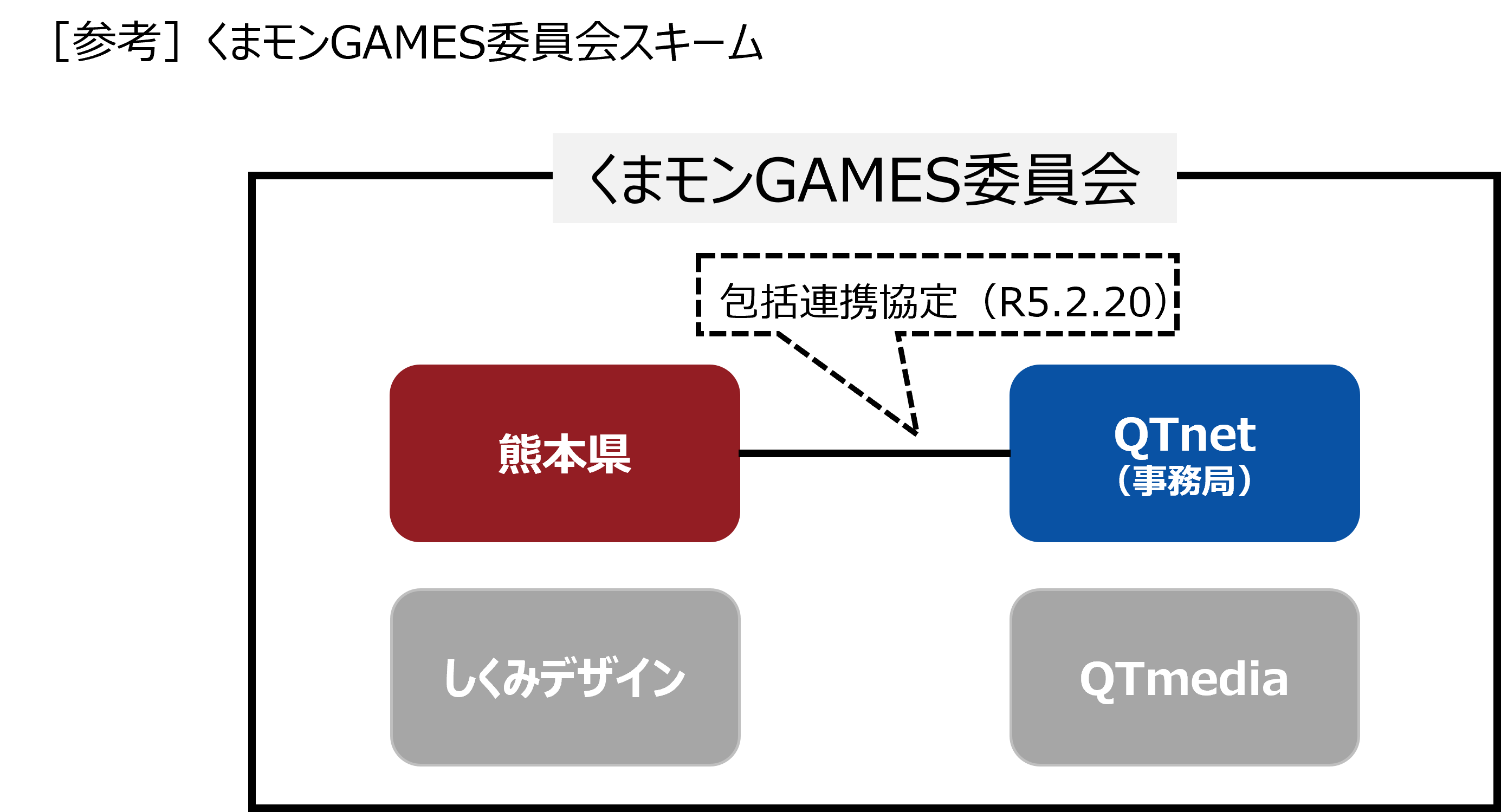 ※熊本県と株式会社QTnetは、バーチャル世界におけるくまモンの世界観浸透・教育分野支援を目的に包括連携を締結し、くまモンGAMES委員会を立ち上げました。