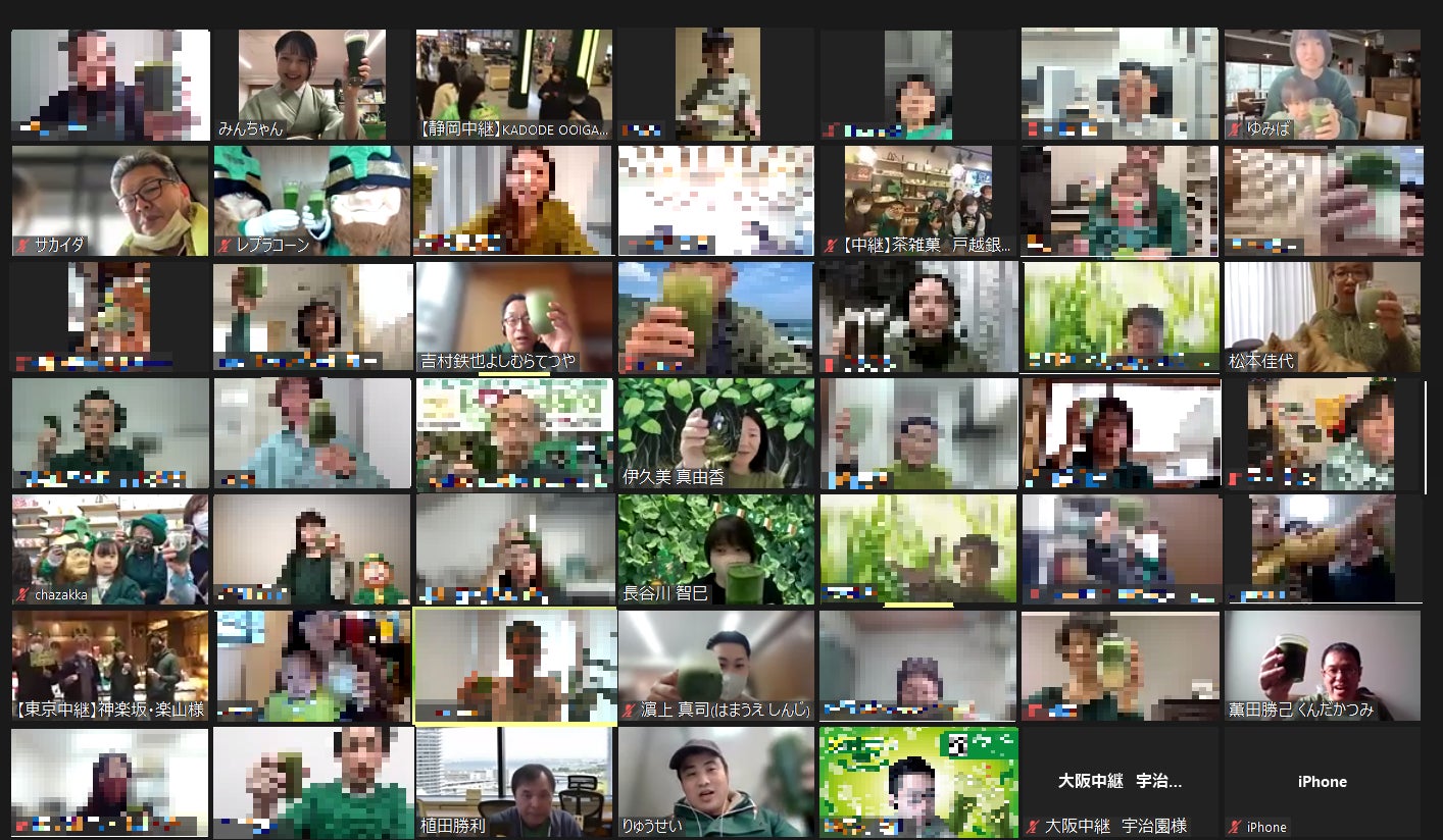 抹茶YouTuberみんちゃんがZoomで全国各地のお茶屋さん・茶産地を中継で繋ぐ、オンラインイベントを開催いたしました。アイルランドでもセトパトリックスデーには緑色の服に身を包みお祝いをしますが、本イベントのドレスコードも「緑色のもの」です。参加者の方々には、緑の洋服・帽子・小物などを身につけ、イベントに臨んでいただきました。