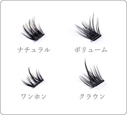 1束の幅5mmの小サイズのため自由なデザインが可能です。中央に向かって長めにするとキュートな目元に。目尻に向かって長めに付けるとセクシーな目元に。好みの組み合わせで着けて様々な目元の印象を創出することが可能です。