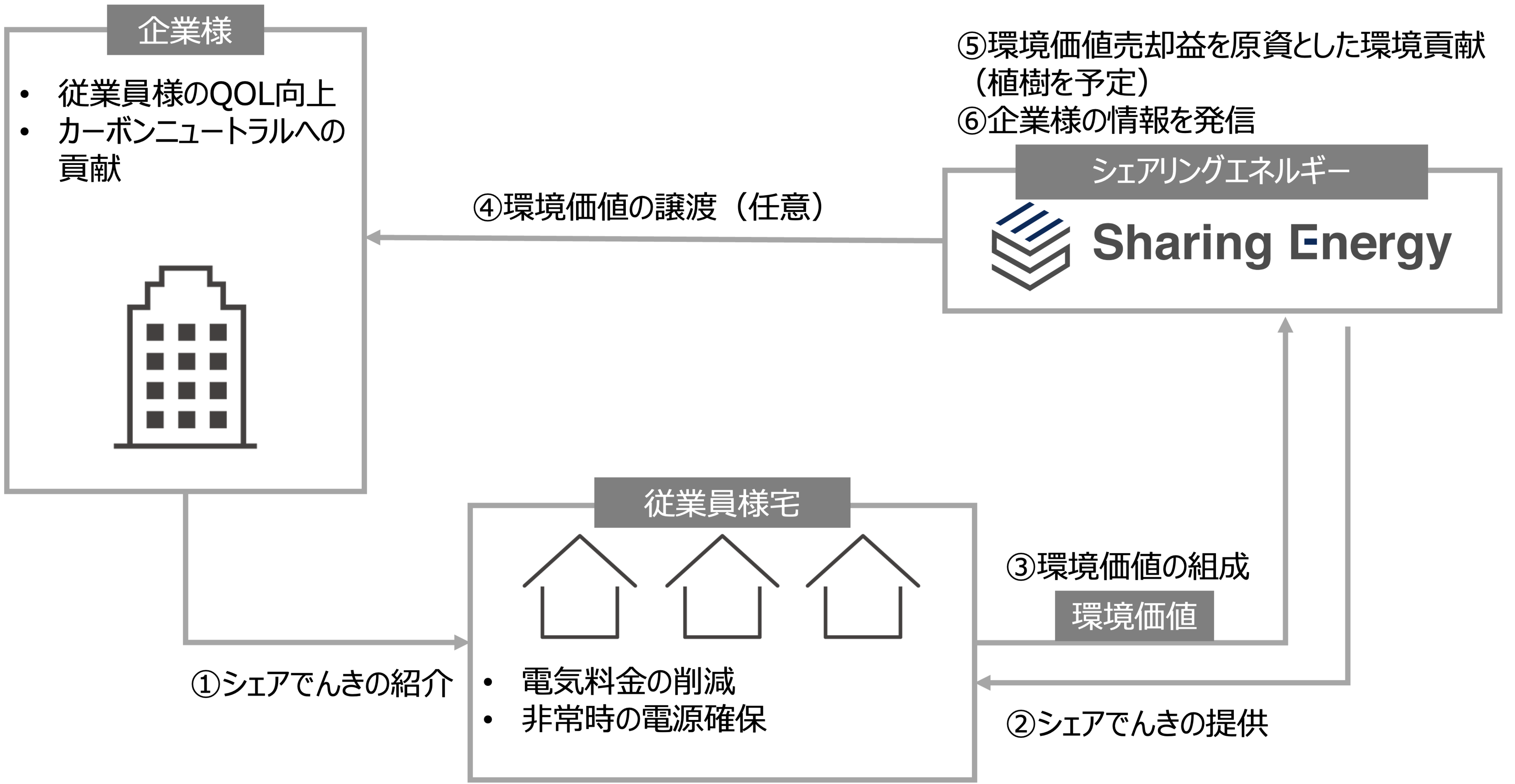 当社は、シェアでんき 環境貢献サービスを通じて、企業様、従業員様とご一緒に、従業員様のQOL向上、ならびに、カーボンニュートラルへの貢献を実現してまいります。