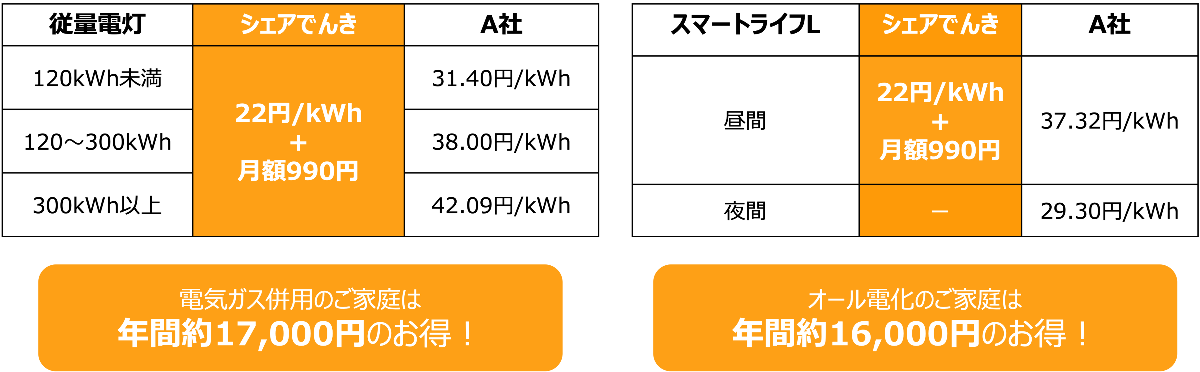 ※削減金額はA社の電力量料金単価を前提に、電力使用量の30%をシェアでんきで賄った場合の試算となります。