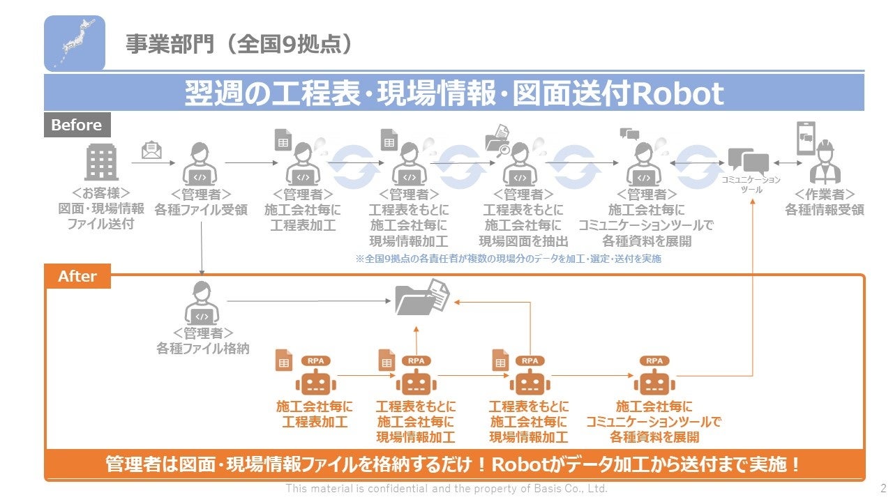 このように、ベイシスでは東京本社だけではなく地方拠点でもRPA活用が推進されており、全国の各プロジェクトでの効率化、品質向上が図られています。