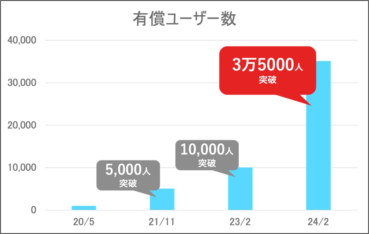 その後も商用環境において実証と改良を重ねながら、多くのケアマネジャーにその有効性をご理解いただきつつ成長し、2024年2月に有償ユーザー数が3万5000人を突破しました。