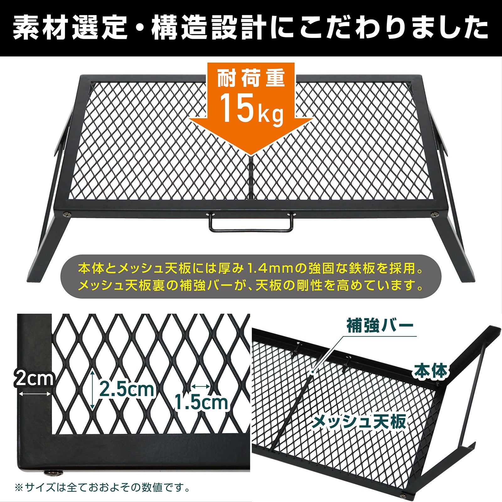 ~調理用の五徳として、メイン・サブテーブルとして、クーラーボックススタンドとして、多用途で使える「焚き火メッシュテーブル」はキャンプで大活躍!~