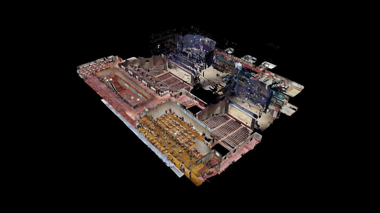 実写で現物と同じ環境をサイバー空間に構築し、現場からリアルタイムデータをIoTなどで取得したビッグデータをAIで学習、現場と仮想空間で同じ環境を作り、今後現場で起こる或いは行う予定の出来事を仮想実証実験及び予測計測などを行う、実写をお受けするポイントクラウド3D撮影です。