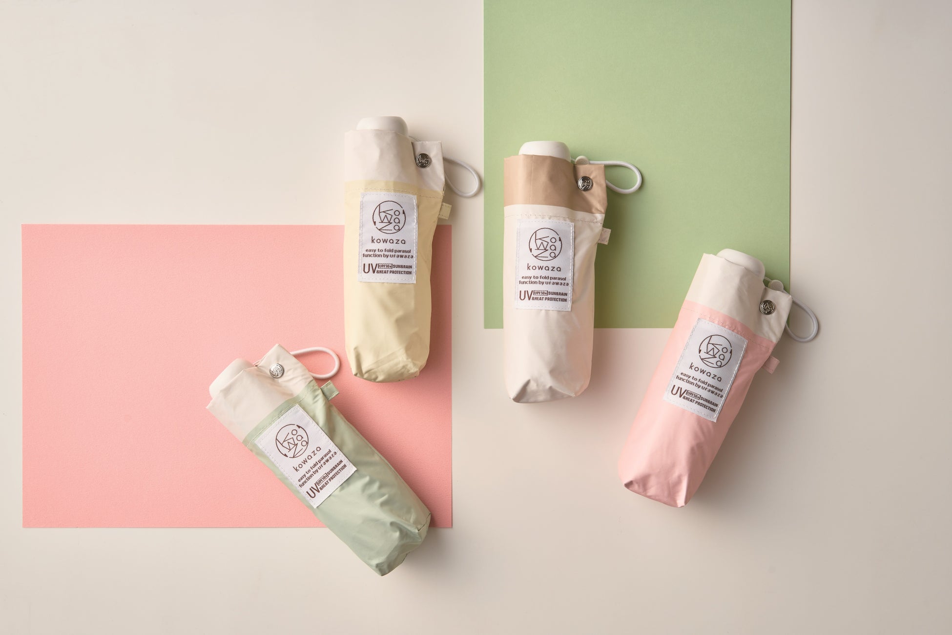 「kowaza」は、2020年3月より発売開始した、簡単にたためる傘として人気の「urawaza(ウラワザ)」シリーズの開発思想を継承し、より日常使いしやすいモデルとして2025年に誕生しました。折りたたみ傘を使用する際に多くの人が感じる「収納時の不快感」に着目し、ガイドに沿ってスムーズに折りたためる構造を採用しています。発売以降、その使いやすさが支持され、シリーズ累計販売本数は26万本を突破しました。