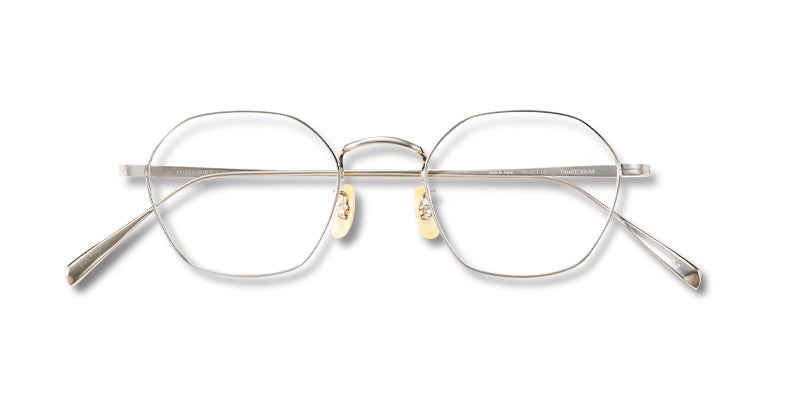 トレンドのヘキサゴン(六角形)シェイプを取り入れた、シンプルなオールメタルフレーム。クラシックなデザインに直線的なラインを取り入れることで、現代的なテイストが加わり、柔らかさと引き締まった印象のバランスが絶妙な一本に仕上がりました。個性的なシェイプながら、顔なじみのよい細身のラインにより、挑戦していただきやすいデザインです。