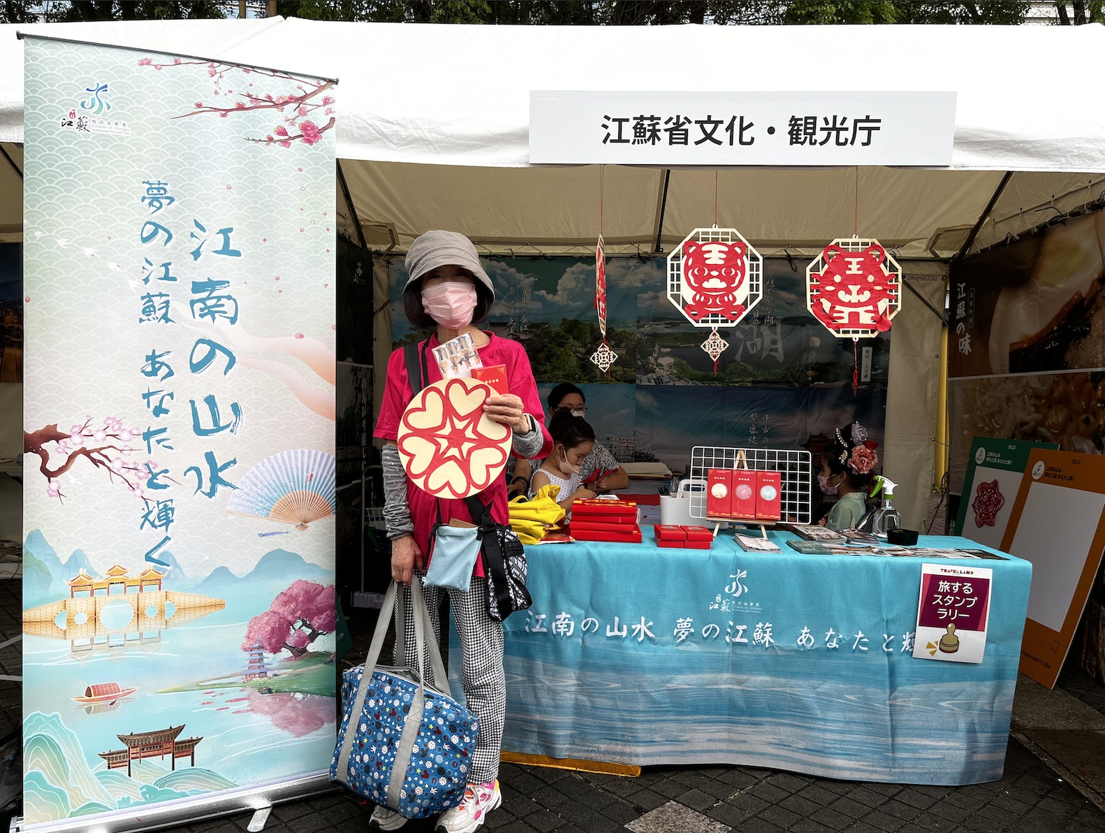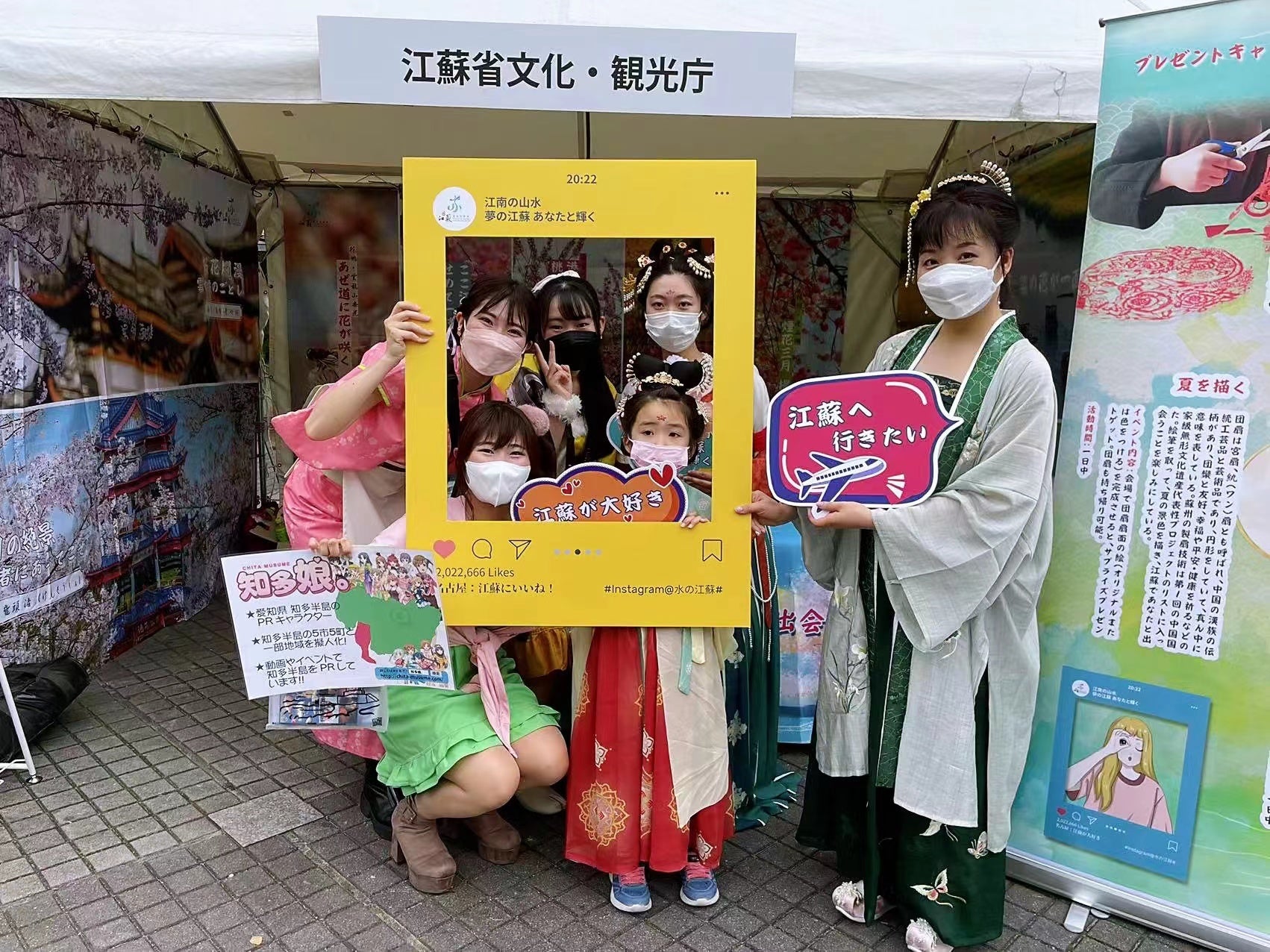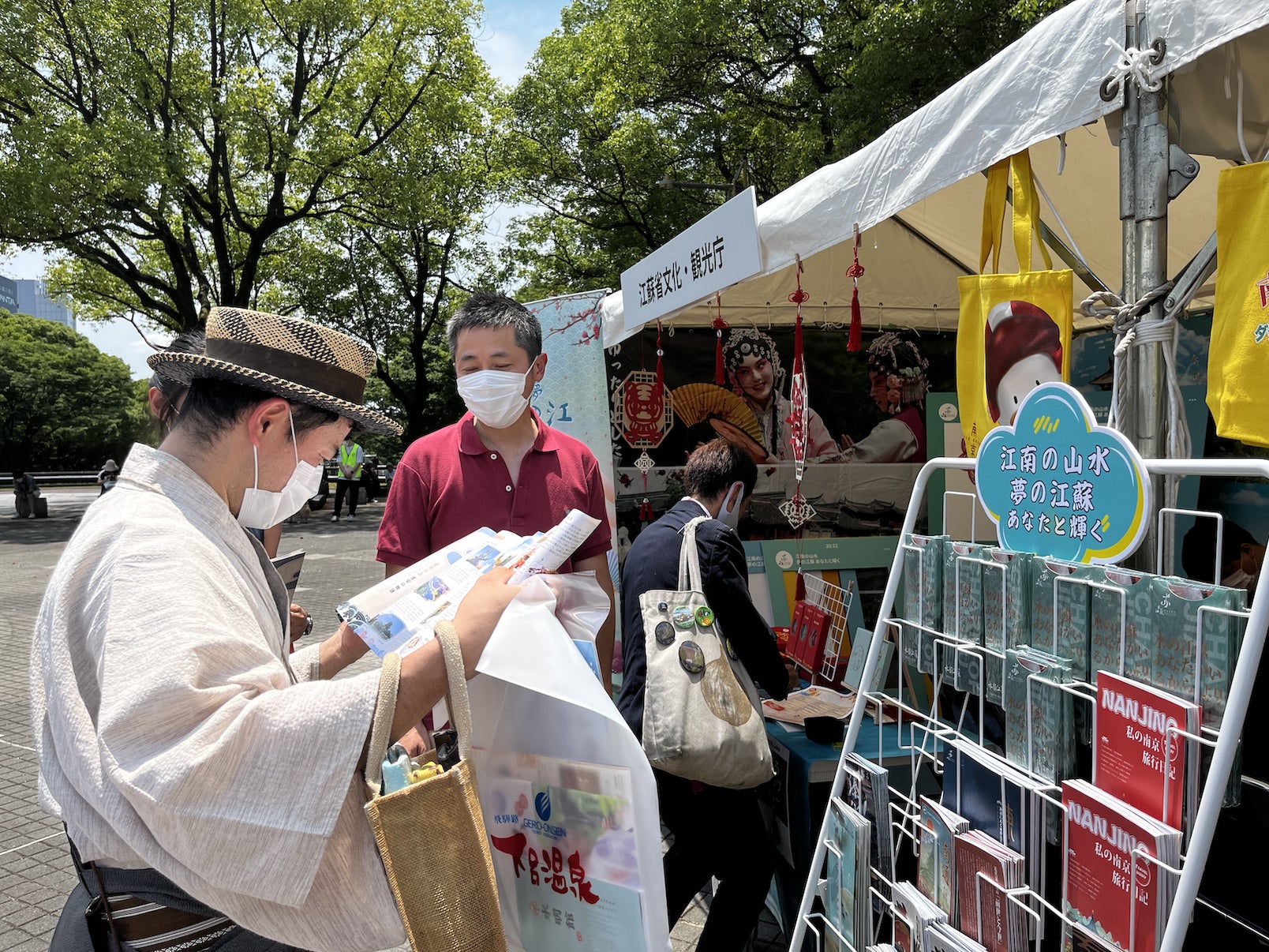 このほか、同センターは中国全省の文化観光資源を統合し、江蘇省各地の詳細な旅行攻略ガイドや交通・食事・宿泊などの情報を含む江蘇省と中国各地の日本語で書かれた宣伝用チラシを展示し、配布しました。会場では漢服を着たスタッフがアンケートを配布し、日本の人々に多元的な中国文化や江蘇省の奥深さをよりより理解してもらい、日本人観光客が江蘇省について質問するスペースを設けたり、江蘇省の観光資源や文化風情を紹介したりするなど、江蘇省ブースには多くの人気が集まっていました。