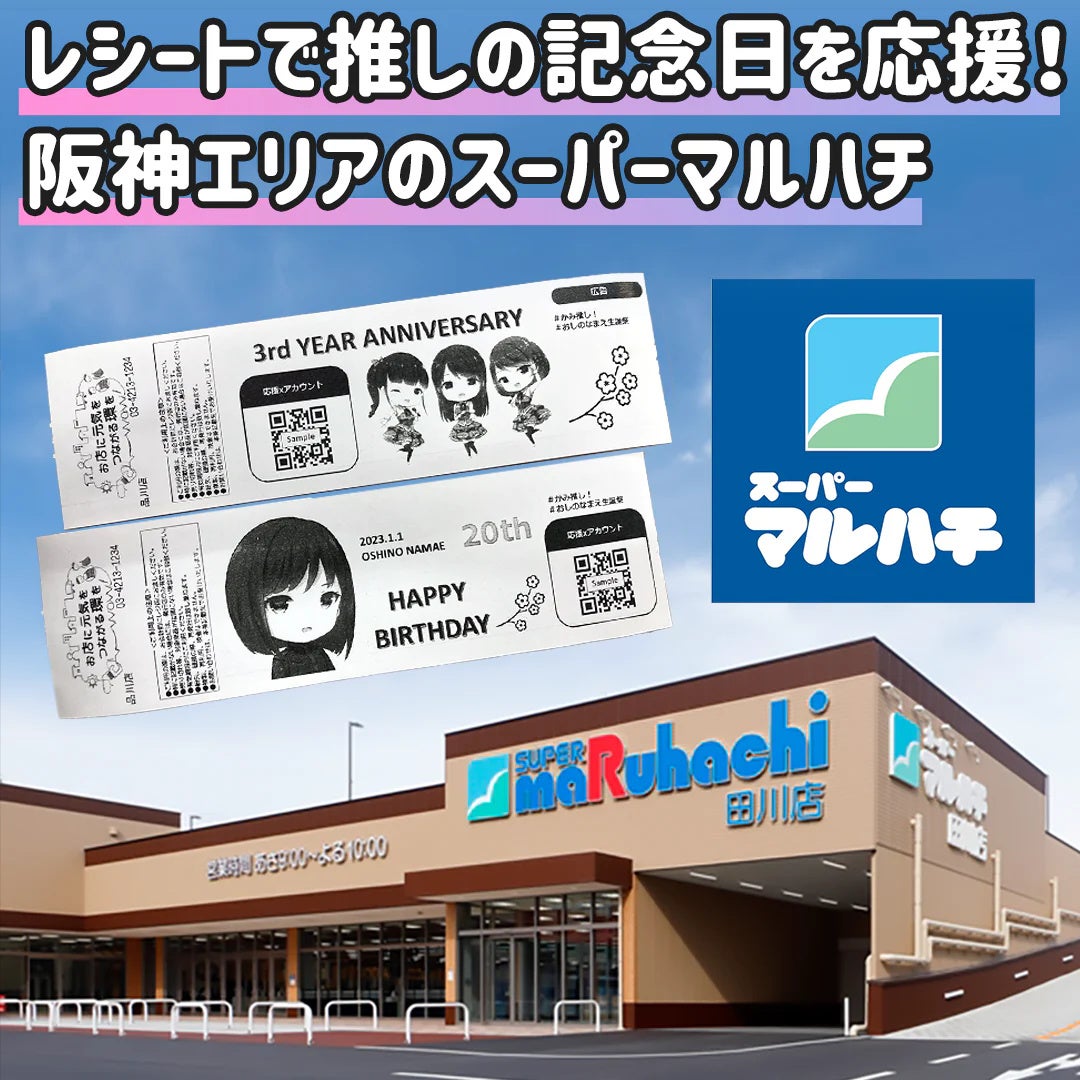 ファンが自らデザインしたメッセージやイラストを、全国のスーパー・ドラッグストアのレシートに印字し、「推しをお祝い/応援するレシート」として記念に残すことができます。