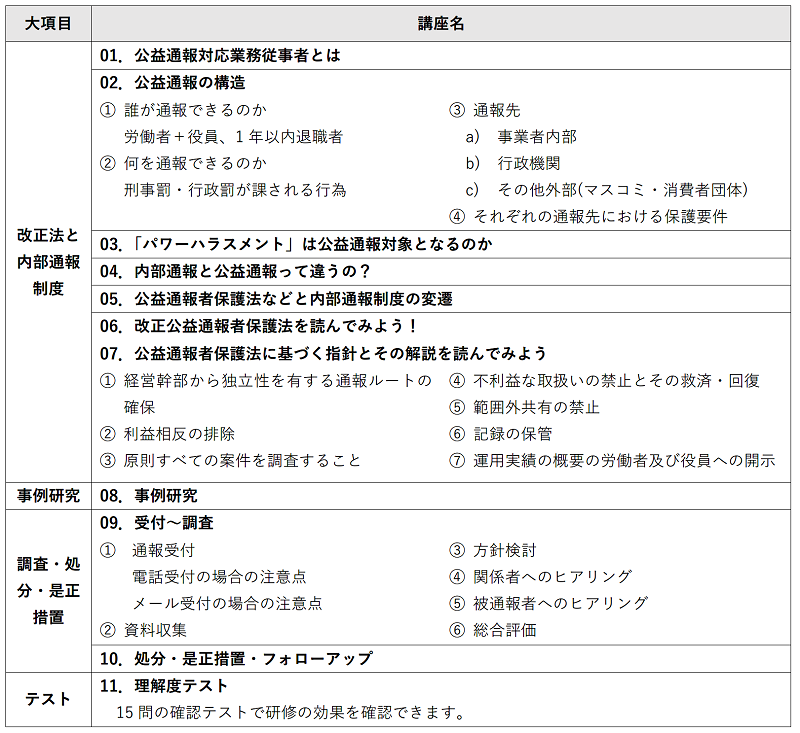 『公益通報対応業務従事者研修 基礎編』詳細 【受講の目安】1講座約3~15分