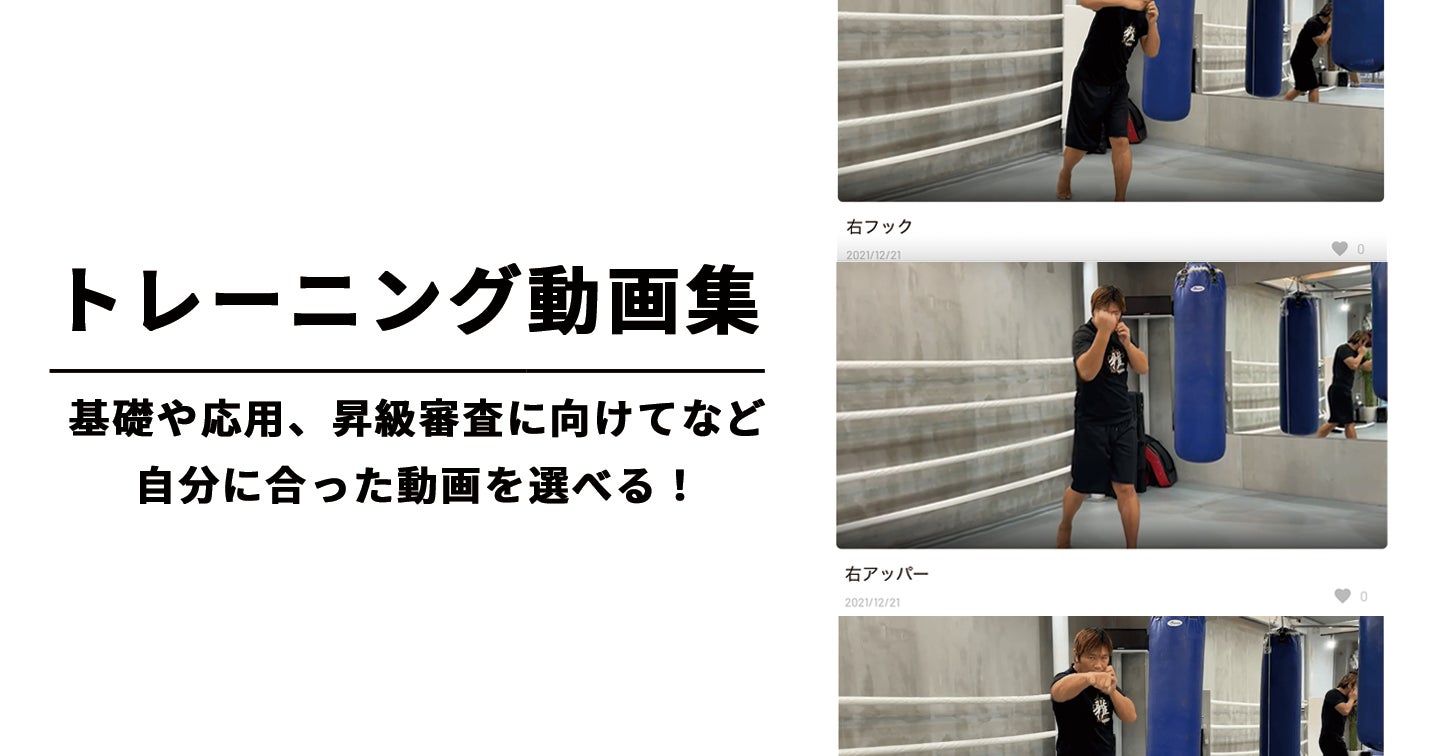 ストレートパンチやフックの仕方など、基礎的な動画から、昇級審査に向けての動画など、自分のランクに合わせて選び、学ぶことができます。