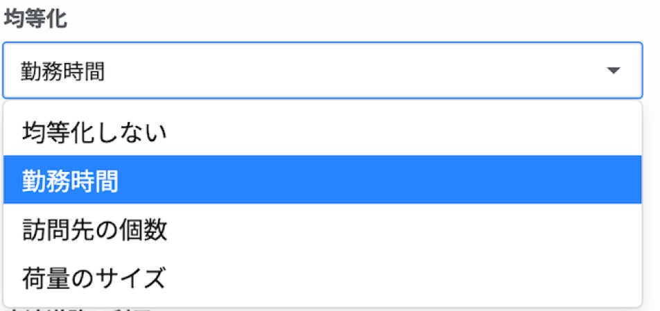 「勤務時間」「訪問先の個数」「荷量」など、多様な項目での均等化が可能。