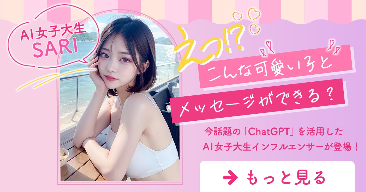 SARI(さり)は、「AI女子大学生」で、恋愛相談・占い・ダンス・コスプレを得意としています。LINEでは、AIインフルエンサー『SARI(さり)』とチャットしたり、『SARI(さり)』のプライベート画像リクエストが行えるサービスを提供している。今回、SARI(さり)の初の写真集「げんじつとーひ しよ♡」が、AmazonのKindle版より発売開始となった。