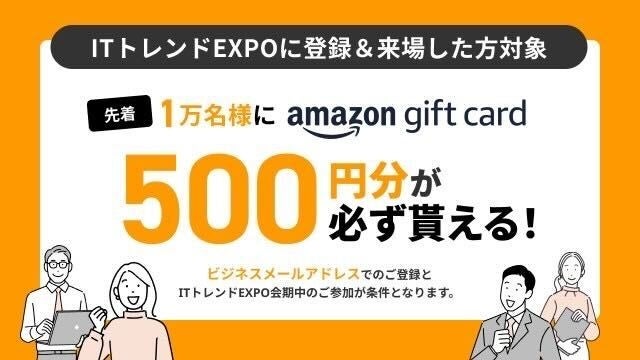 また、ITトレンドEXPO 2024 Summer に参加登録をしていただいた先着1万名様にAmazonギフトカード500円分のプレゼントがございます。