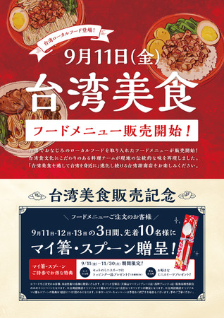 台湾美食を味わってみませんか?9月11日(金)より、新たに関西・関東の一部店舗にルーローハンなどのフードメニューが登場!