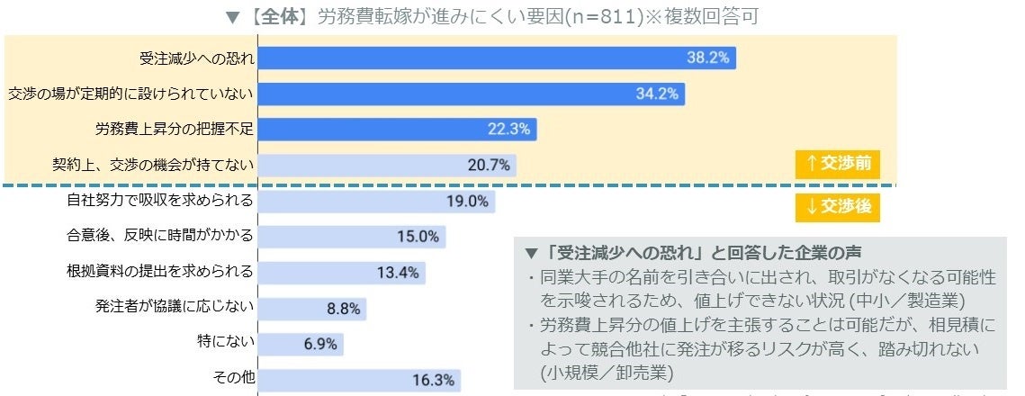 労務費転嫁が進まない要因として最も多かったのは、「受注減少への恐れ」でした。