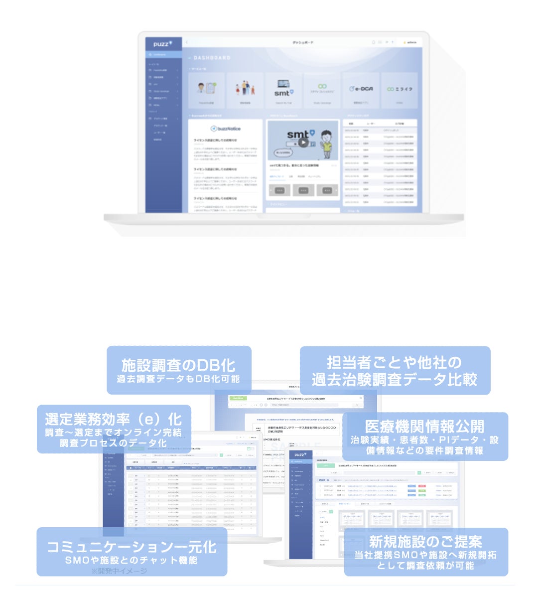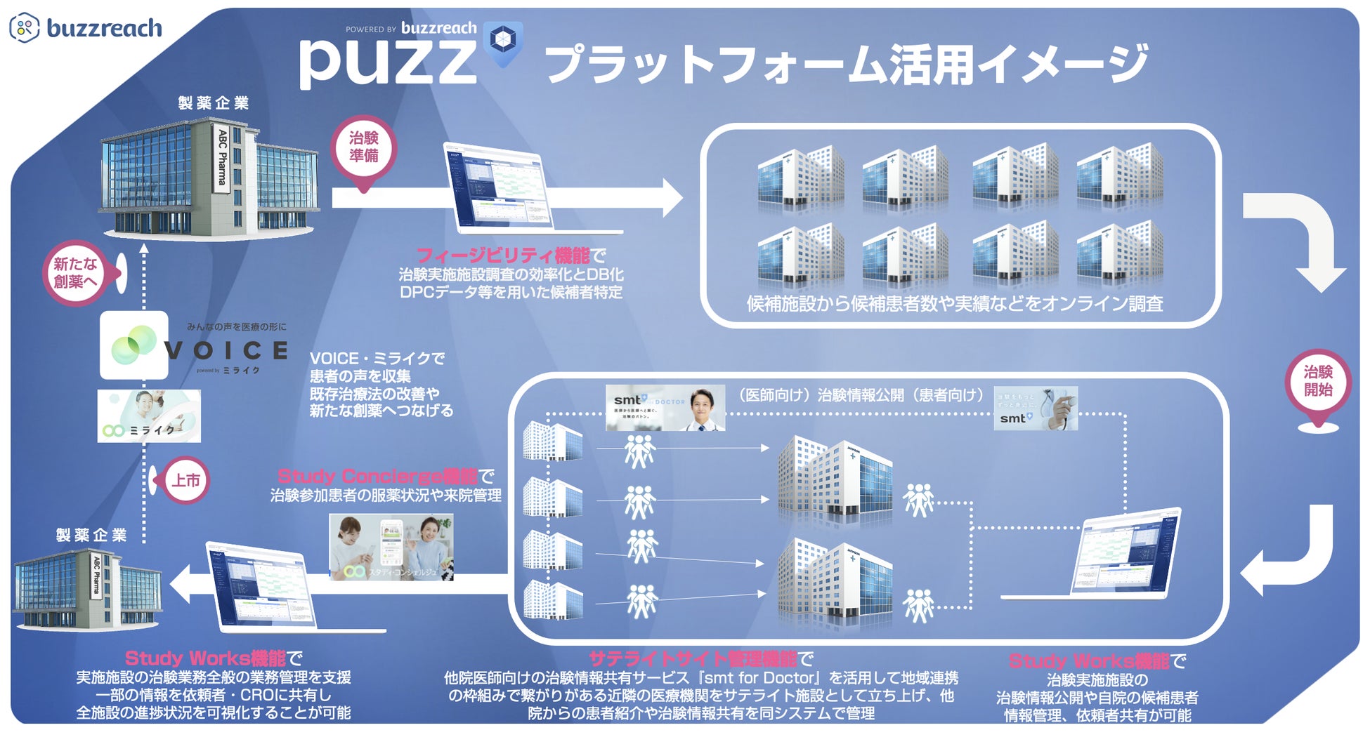 puzzは、製薬企業やアカデミア、医師主導で行われる治験を含む