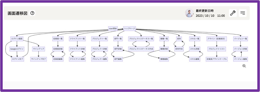 システム全体の構成や画面間の流れを視覚的に把握できるようになり、関係者との認識合わせがスムーズに行えるようになりました。出力された図はMermaid記法での編集も可能です。
