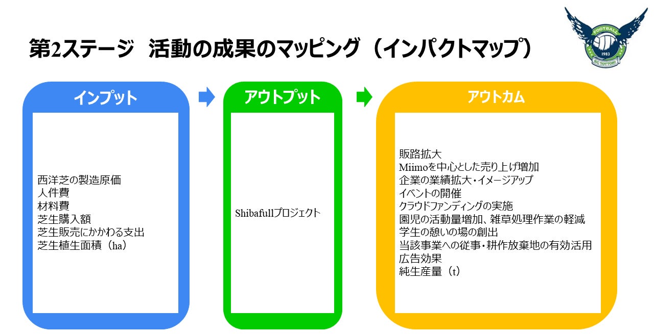 全国第二位の芝生生産の作付面積、出荷数量を誇る鳥取県にて、クラブが持つ芝生生産ノウハウがあり、これまでの地域活動において芝生による地域貢献の可能性を感じ、芝生の生産が地域課題の解決につながることを実感し生まれたJリーグ・ガイナーレ鳥取の「Shibafull(しばふる)」をモデルケースに特定。必要最小限の施工・管理により低コストで芝生グラウンドを広げる手法である「鳥取方式」による芝生化により、人口減少や高齢化で拡大する耕作放棄地を芝生の生産に再利用することの社会的価値効果測定の実証実験を行った。