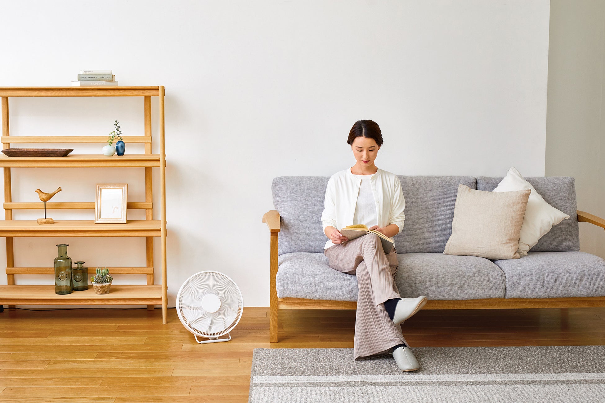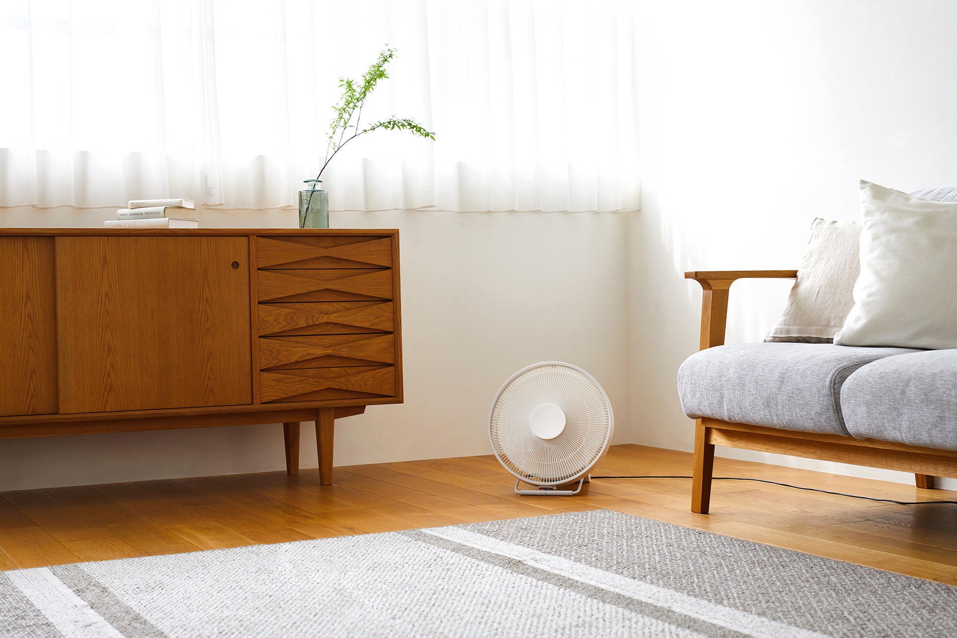 「首振りがいらないサーキュレーター」は、リビング空間の暮らしを妨げることなく、心地よい空間に整えることを目指した、静かで存在感を抑えたサーキュレーターです。