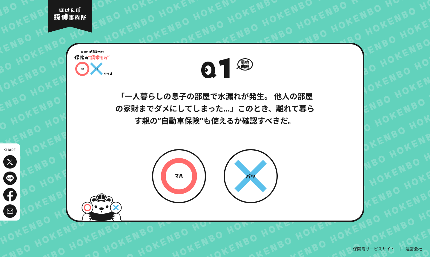 ややこしい保険知識をゲームで知れる!:自動車保険、火災保険、生命保険など、身近な保険に関する雑学を堅苦しくないクイズ形式で知る