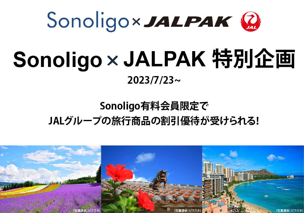 Sonoligo x JALPAK 特別企画 〜 Sonoligo有料会員限定でJALグループの旅行商品の割引優待が受けられます