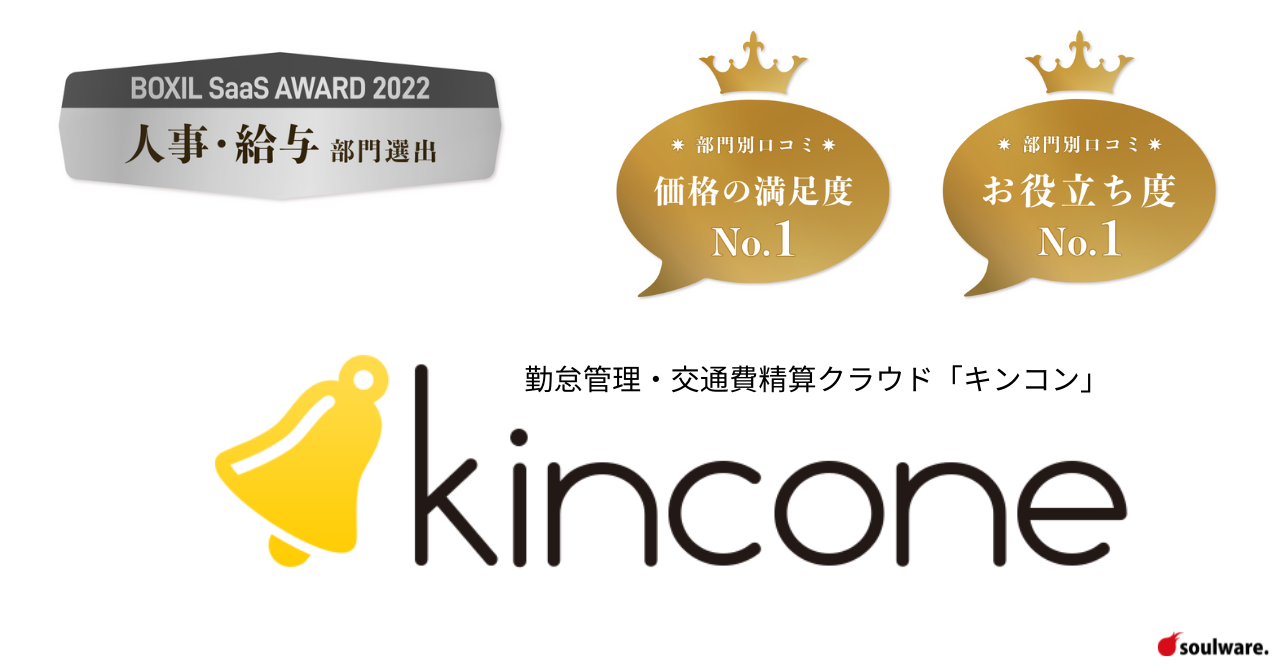 勤怠管理・交通費精算クラウド「kincone(キンコン)」が「BOXIL SaaS AWARD 2022」にて【人事給与部門賞】を受賞