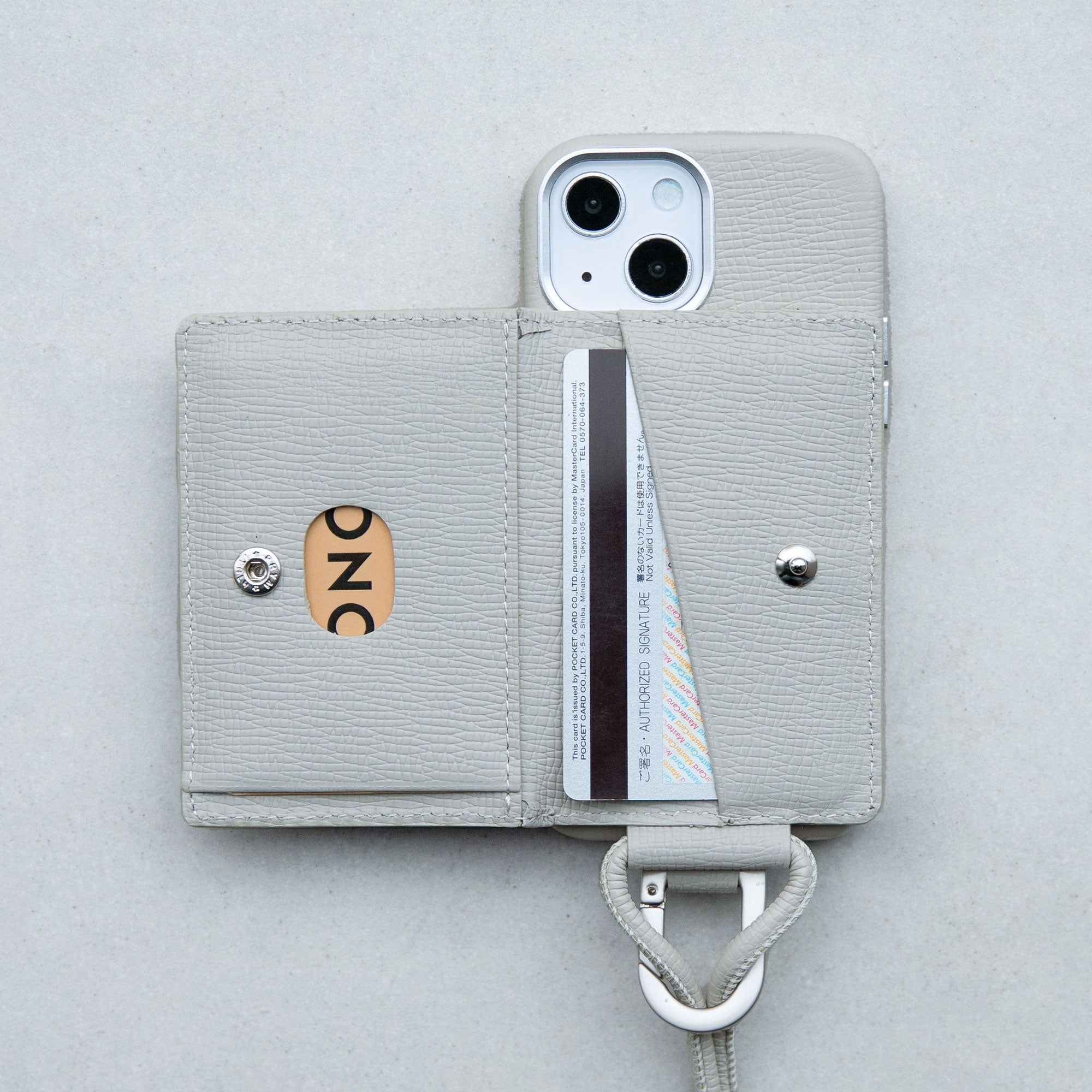 レザー製スマホショルダーの新作として、エンボスレザーで仕立てた新色「グレー」のウェイトリストを公開。