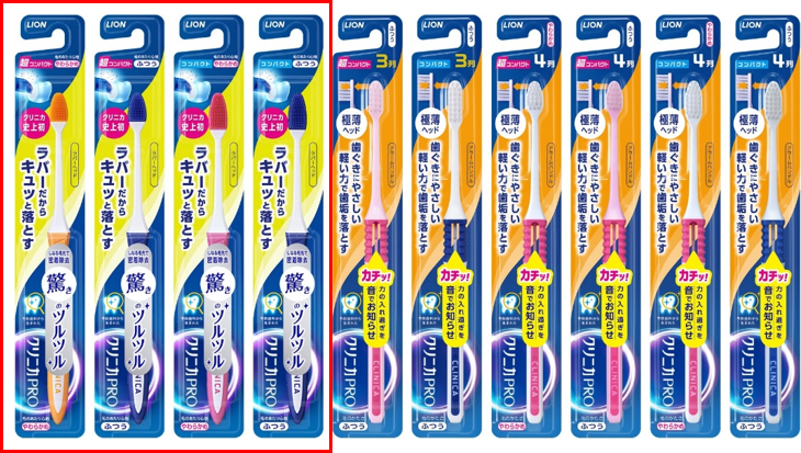 上記□が本リリースの製品。『クリニカPROハブラシ アラームハンドル』7月自然切替。