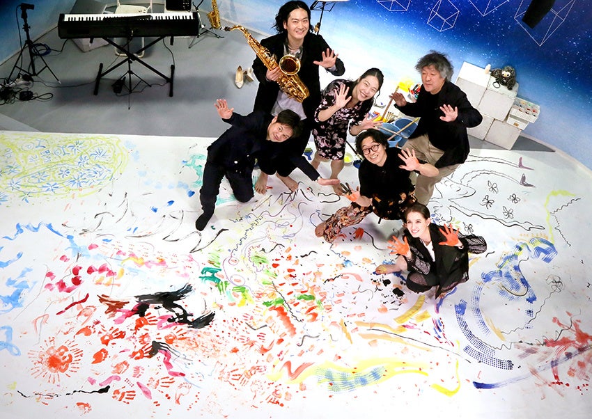 4週目(7/22)大分県立美術館の榎本寿紀、音楽家・鈴木広志を交えてワークショップ&ライブペインティング