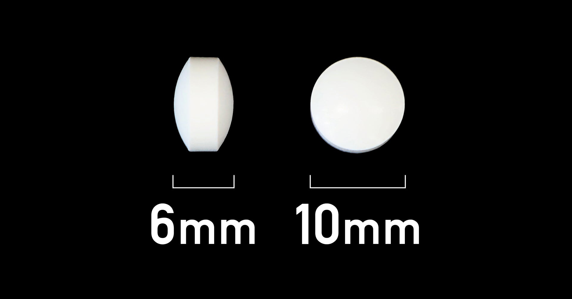 タブレットは直径10mm、厚さ6mmの小粒設計で、飲み込みやすくなっています。